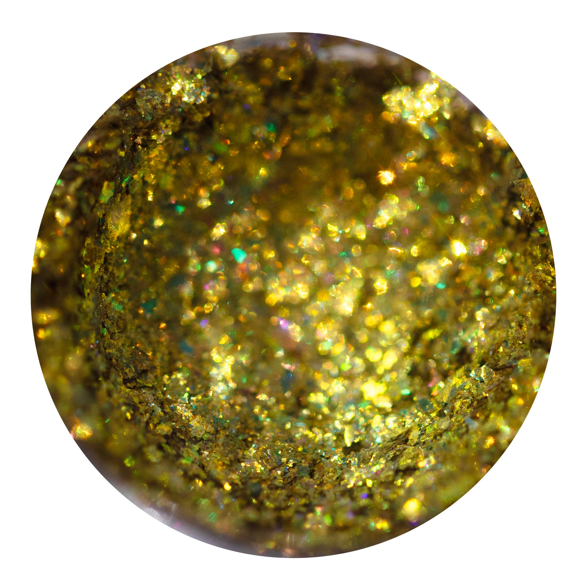 Beautiful bright olive/chartreuse/gold with an incredible high impact of shine!