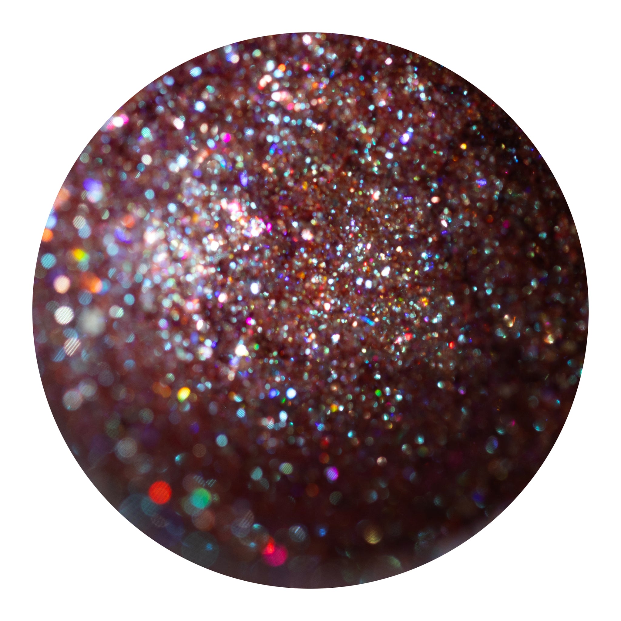 A reddish/brown background underneath a foiled teal/violet/blue/pink/silver shimmer with hints of rainbow holographic and iridescent silver mini flakes.
